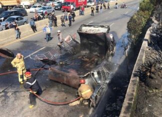 المنبر التونسي (انفجار شاحنة محملة بالمحروقات) – انفجر اليوم الجمعة، صهريج محمل بالغاز على أحد الطرقات السريعة المزدحمة في لبنان، ما أدى