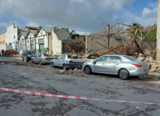انهيار مبنى بنهج العميد الجباري قرب سوق المنصف باي وتضرر عدد من السيارات..