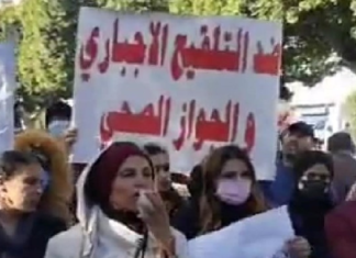 نفذ عدد من المواطنين ، اليوم الأربعاء 22 ديسمبر 2021 ، وقفة إحتجاجية ضد إجبارية التلقيح خاصة اثر دخول قانون الاستظهار بجواز التلقيح حيز التنفيذ