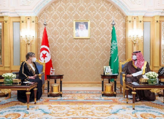 إلتقى صاحب السمو الملكي الأمير محمد بن سلمان بن عبدالعزيز ولي العهد نائب رئيس مجلس الوزراء وزير الدفاع، اليوم الاثنين 25 أكتوبر 2021، رئيسة الحكومة التونسية نجلاء بودن،