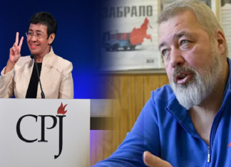 جائزة نوبل للسلام من نصيب الصحافييْن الفلبينية ماريا ريسا والروسي دميتري موراتوف