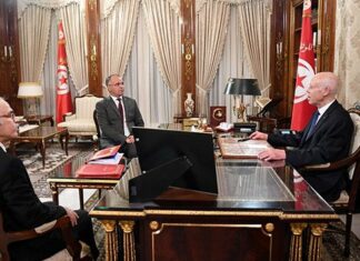 اجتمع رئيس الجمهورية قيس سعيّد، الجمعة 10 جانفي 2025 بقصر قرطاج، برئيس الحكومة كمال المدوري ووزير الشؤون الاجتماعية، عصام الأحمر.