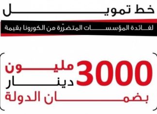 خط تمويل للمؤسسات المتضررة من كورونا بقيمة 3000 مليون دينار
