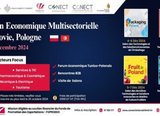 سيشارك 20 فاعل اقتصادي في مهمّة اقتصاديّة من 4 إلى 7 ديسمبر 2024، متعددة القطاعات إلى فرصوفيا ببلونيا، ببادرة من القسم الدولي من كنفدرالية المؤسّسات المواطنة التونسيّة