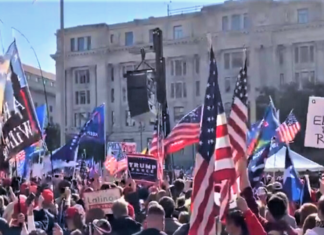 المنبر التونسي (أنصاره في واشنطن) - يظهر شريط فيديو مرور موكب الرئيس الأمريكي دونالد ترامب بالحشود من مؤيديه أثناء "مسيرة ماغا المليونية" وهو في