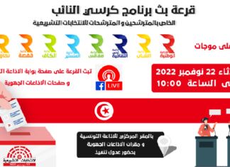 تجرى قرعة بث برنامج كرسي النائب الخاص بالمترشحين و المترشحات للانتخابات التشريعية 2022 على موجات الإذاعة الوطنية ، إذاعة الشباب