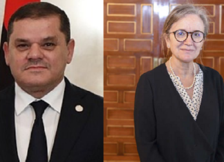 أجرت رئيسة الحكومة نجلاء بودن أمس الأربعاء ، مكالمة هاتفية مع رئيس الوزراء الليبي عبد الحميد الدبيبة.