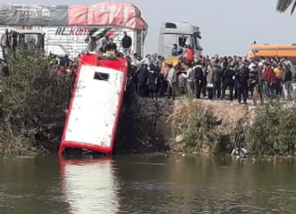 لقي 16 شخصا مصرعهم وأصيب 6 آخرون اليوم السبت في محافظة الدقهلية في مصر، إثر سقوط حافلة صغيرة بأحد ترع نهر النيل (ترعة الرياح التوفيق) على طريق المنصورة - القاهرة