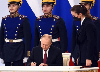 وقع الرئيس الروسي فلاديمير بوتين، اليوم الأربعاء 5 أكتوبر 2022، قانون ضم 4 مناطق أوكرانية إلى بلاده،
