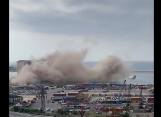 (فيديو) انهيار جزء من صومعة مرفأ بيروت