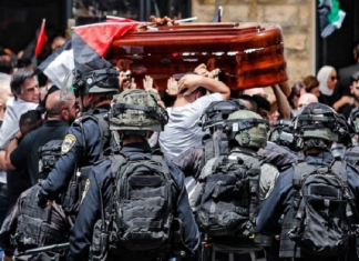شن الجيش الصهيوني اليوم الجمعة 13 ماي 2022، هجوما عنيفا على موكب تشييع جثمان الصحفية الفلسطينية شيرين أبو عاقلة إلى مثواها الأخير