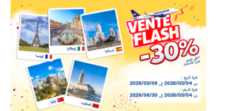 المنبر التونسي (نوفلار) - أعلنت نوفلار عن إطلاق عرض «Vente Flash» جديد يمكّن المسافرين من تخفيض بنسبة 30% على سعر التذكرة دون احتساب الأداءات، وذلك نحو فرنسا وإيطاليا وإسبانيا وتركيا والمغرب.